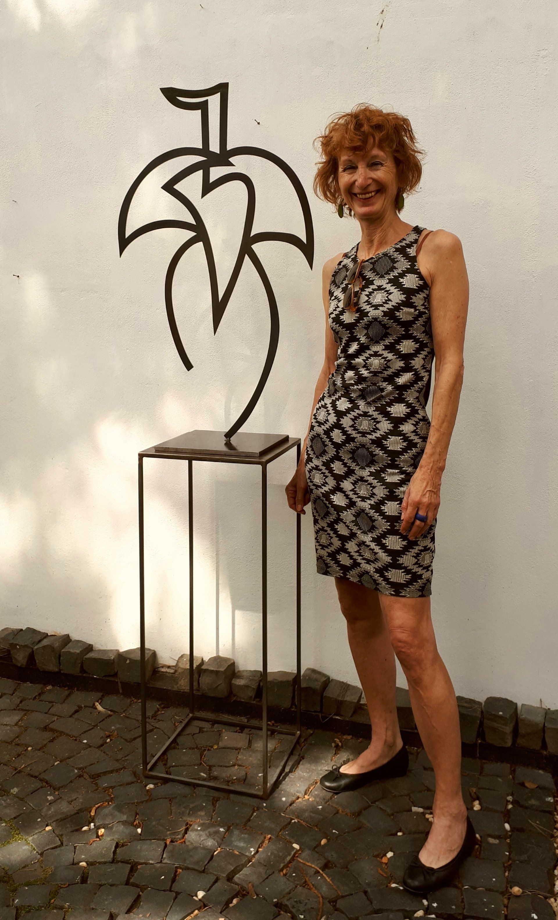 Die Skulptur „Tanz“ ist abstrahierte Form eines Aktes. Sie will das Momenthafte, die Leichtigkeit und die Kraft des Tanzes zeigen. Die Linien sind fragil, das Material starker Stahl.